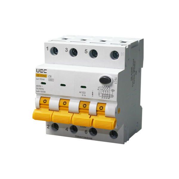 Автомат диференційного захисту SB-R9NE 4P C 06A 10mA Tип AC 6kA UEC