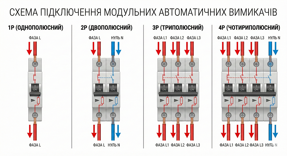 | Критерій | 1P (Однополюсний) | 2P (Двополюсний) |
