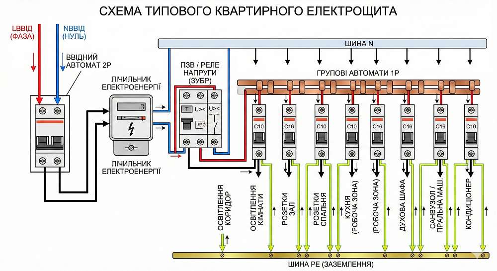 Немає універсального рецепта "ставте скрізь 2P", бо це роздує бюджет і розмір щита вдвічі. Потрібен розумний баланс. Ось схема, яку ми в UEC часто використовуємо для типових квартир.