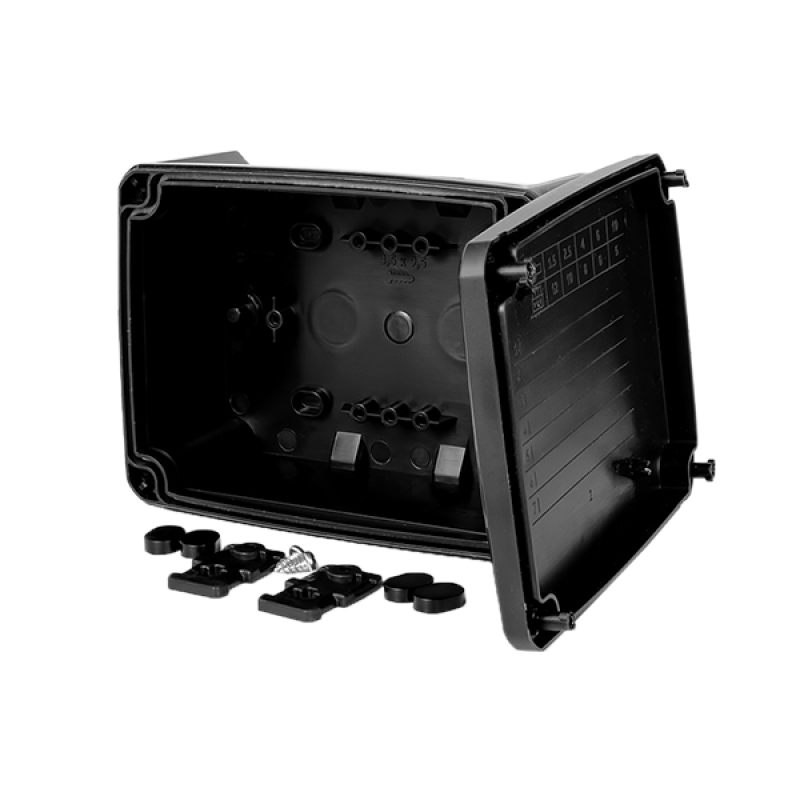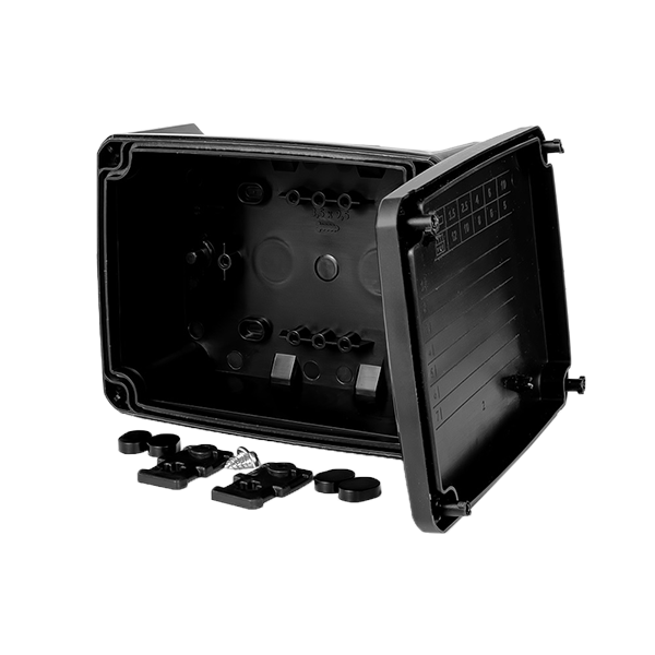 Коробка монтажна для відкритого встановлення без отворів 146х105х65 мм (зовн.162х122х68 мм) IP67 із скобами чорна UEC