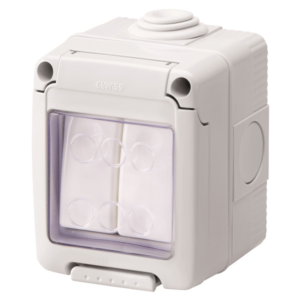 Вимикач прохідний в зборі 2-клавішний 27 COMBI SYSTEM 16А IP55 сірий GEWISS
